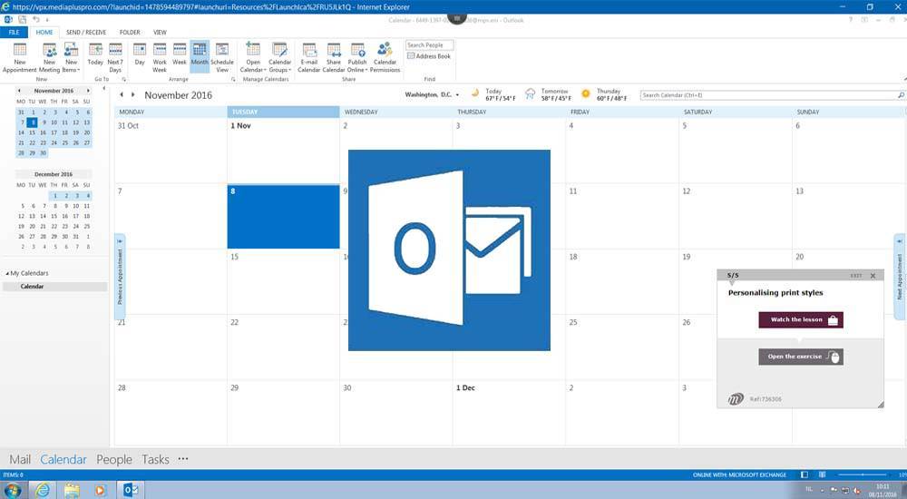 E-mail working environment Managing panes and folders Reading messages You need to know: Text made easy Creating and sending a message You need to know: Formatting characters Managing text in a message Using recipients from an address book Attaching files to a message Managing attachments to a received message Replying to a message Forwarding a message Printing messages Deleting messages Outlook’s calendar Using the reminders window Outlook contacts Creating tasks Creating a note Managing categories Using help Finding messages Managing mail while you are absent Adding a signature to a message Creating an appointment or event Recurrent appointments or events Customising the calendar Printing the calendar and calendar items Personalising print styles Contact groups Sorting and grouping contacts Managing tasks Managing notes You need to know: Selecting, copying, moving Moving or copying items Sending a contact by e-mail Customising views Recording an item in the journal You need to know: Customising the ribbon You need to know: Best practice with an e-mail application Sorting, grouping and filtering messages Managing folders Search folders Managing outgoing messages Message tracking options Message follow-up flags Message templates (forms) Managing meetings Quick steps Recalling and resending a message Electronic business cards Managing Conversation view Managing general e-mail options You need to know: Internet You need to know: Viruses You need to know: Outlook and OWA Archiving messages Optimising the size of the mailbox Exporting and importing a folder Managing a data file Creating rules Managing rules Managing junk e-mail Sharing a folder Calendar groups Sharing calendars