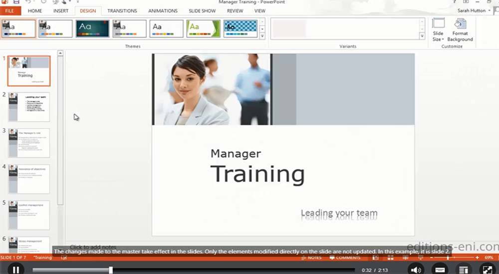 Managing chart templates Slide background Customising a theme The slide master Managing layouts Managing placeholders Formatting slide masters Using slide masters The notes master The handout master Custom slide shows Choosing the slides for the slide show You need to know: Styles and templates Creating and using a presentation template Presentation propertiesFinalising presentations Digital signatures You need to know: Versions and recovery of files You need to know: Customising the ribbon You need to know: The SharePoint site You need to know: Sharing a document over the internet You need to know: Best practice with a presentation program Comparing presentations Protecting a presentation with a password